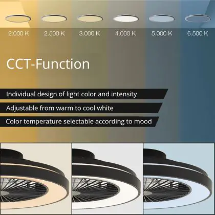 3. Tunable white: The white light can take any values in the listed Kelvin scale, for instance 2200K up to 6500K.