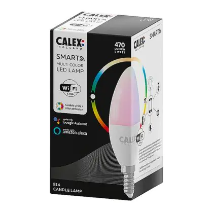 Calex Smart Tuya Wifi E14 Candle 5W 470lm - 822-840 Tunable White | RGBW - Dimmable - Replaces 40W