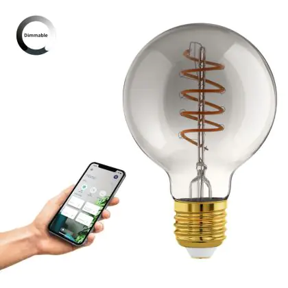 Eglo Connect.Z Smart LED Globe E27 Filament Smokey 4W 150lm - 820 Extra Warm White | Dimmable - Replaces 15W