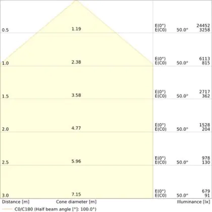 The colour code is a combination of colour rendering (CRI) and light colour (Kelvin). The first number indicates the colour rendering (1 = very poor colour rendering, 9 = maximum colour fastness). The second and third number contains the light colour. Example: the colour code 830 consists of good colour rendering (8) and warm white light (3000K). |