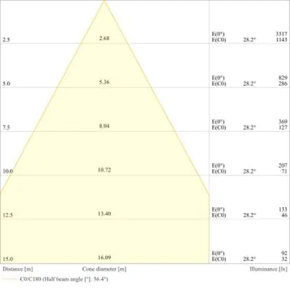 A beam angle indicates the angle of the light beam coming from a light source. The smaller the radiation angle in degrees (D), the narrower the beam angle.