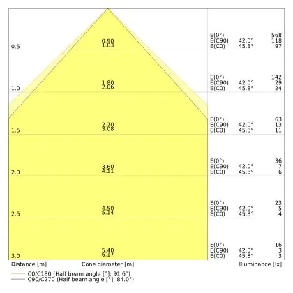 The colour code is a combination of colour rendering (CRI) and light colour (Kelvin). The first number indicates the colour rendering (1 = very poor colour rendering, 9 = maximum colour fastness). The second and third number contains the light colour. Example: the colour code 830 consists of good colour rendering (8) and warm white light (3000K). |