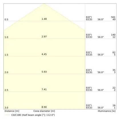 The colour code is a combination of colour rendering (CRI) and light colour (Kelvin). The first number indicates the colour rendering (1 = very poor colour rendering, 9 = maximum colour fastness). The second and third number contains the light colour. Example: the colour code 830 consists of good colour rendering (8) and warm white light (3000K). |
