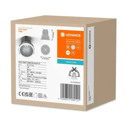 Ledvance LED Spot Twist Pro Aluminium Silver Reflector 5W 400lm 30D - 840 Cool White | 70mm - Cutout 65mm - IP20