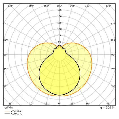 The Luminous Efficacy (lm/W) indicates how efficiently a light source uses energy. We divide the number of lumens by the wattage. The higher the number, the more efficient a product is in terms of energy consumption. LED lighting has a considerably higher lumen/Watt ratio than conventional lighting.