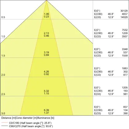 A beam angle indicates the angle of the light beam coming from a light source. The smaller the radiation angle in degrees (D), the narrower the beam angle.