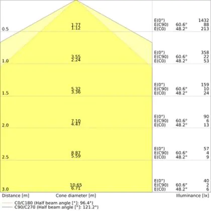The colour code is a combination of colour rendering (CRI) and light colour (Kelvin). The first number indicates the colour rendering (1 = very poor colour rendering, 9 = maximum colour fastness). The second and third number contains the light colour. Example: the colour code 830 consists of good colour rendering (8) and warm white light (3000K). |