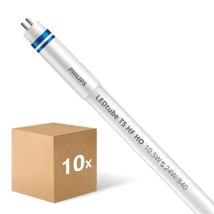 Multipack 10x Philips LED Tube T5 MASTER Instantfit (HF) High Output 10.5W 1600lm - 840 Cool White | 55cm - Dimmable - Replaces 24W