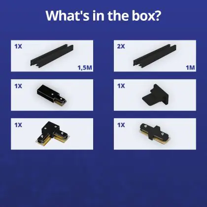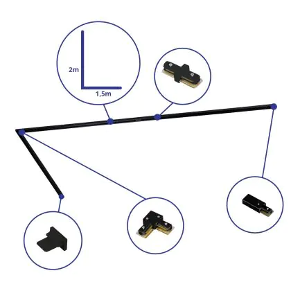 | Manufacturer Name | Complete L shaped 1-Phase Track Set Black – 1,5 x 2 meter incl. End Cap, Power Connector and L -Con | |